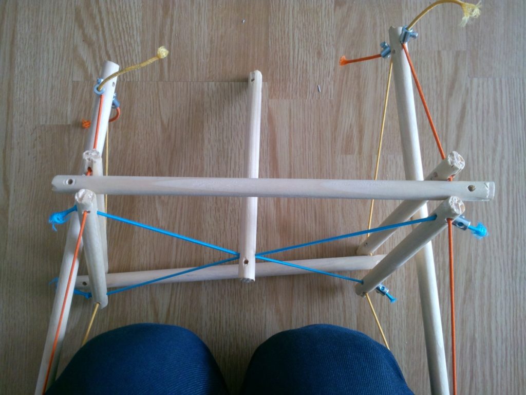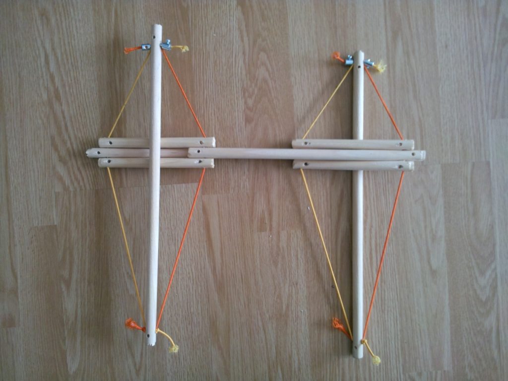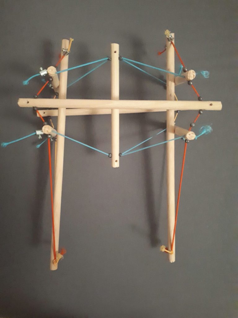 Pour construire le modèle, nous allons unir les différentes tiges de bois avec des élastiques.