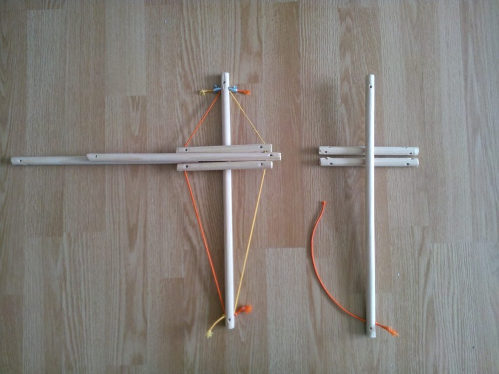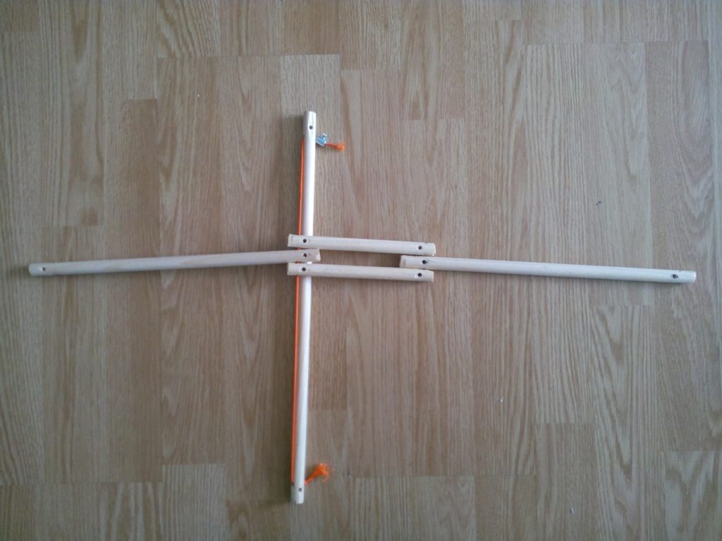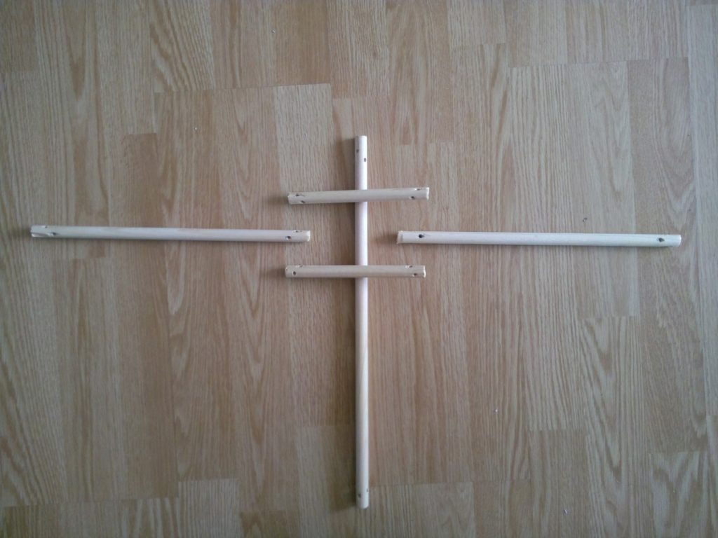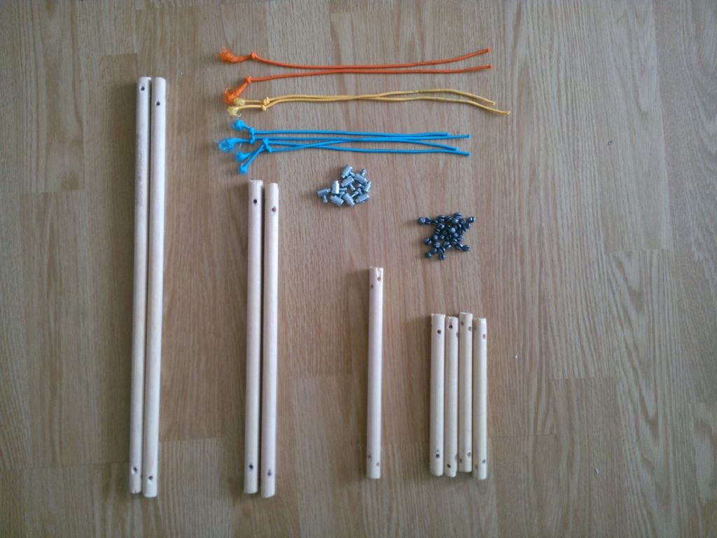 Il faudra quelque chose pour couper les tiges, une scie de préférence. J’ai personnellement utilisé une cisaille pour couper plus vite. Pour les trous, il vous faudra évidemment une perceuse mais un étau sera aussi très utile pour fixer les tiges de bois.